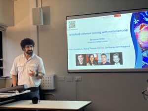 Another highlight of the program was the invited lecture by Benjamin Miller, Lecturer and Research Fellow in UCL’s Nanotechnology and Medical Physics Departments. He offered fascinating insights into his work on quantum sensing techniques for biomedical applications, inspiring engaging conversations about potential synergies with the fastMOT project.